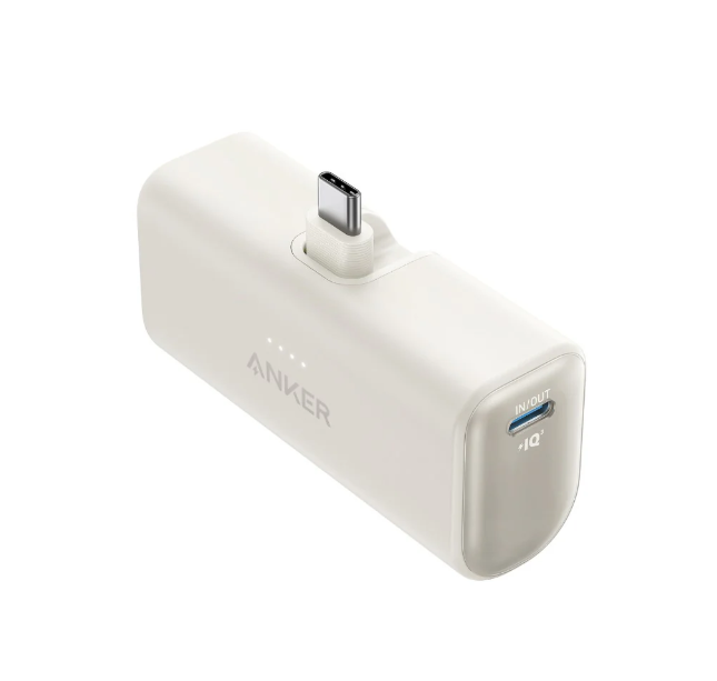 Nano 5,000mah Powerbank 22.5w, Built in Usb-C with Foldable Connector White by Anker